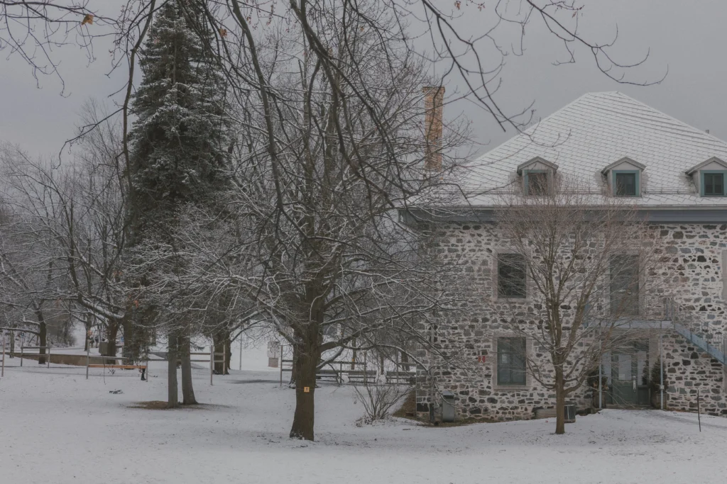 From there the walk slowly rises toward Mount Royal. At first it feels like normal streets, then sidewalks disappear and turn into packed snow paths without noticing the moment it changed. The air becomes clearer between the trees. You start feeling the cold properly there, especially in your hands. I kept taking my gloves off to shoot and putting them back on a minute later.